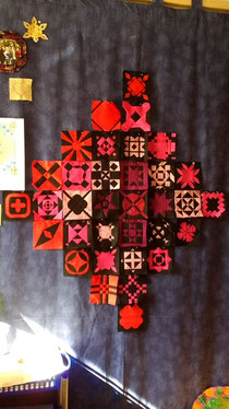 Für die einzelnen Runden habe ich mir die Farben in Farbabstufungen des Regenbogens ausgesucht. Da zwischen den einzelnen Blöcken noch schwarze Streifen kommen, wirken die Blöcke noch etwas lasch..... (was aber auch an der Kamera liegen kann).