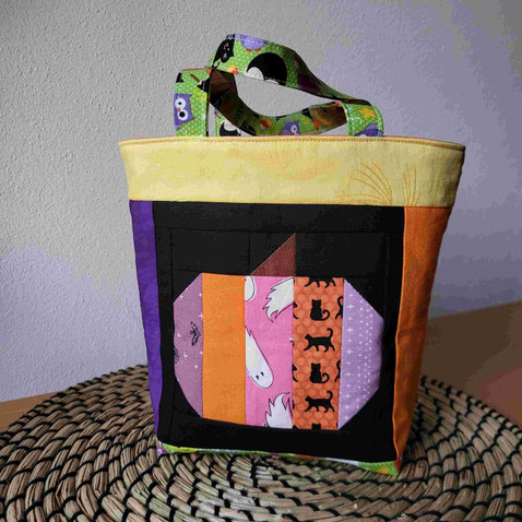 Für ein Patchwork-Wochenende brauchte ich eine Tasche, um mein Mini-Bügeleisen transportieren zu können und gleichzeitig kann die geöffnete Tasche als Bügelunterlage genutzt werden.